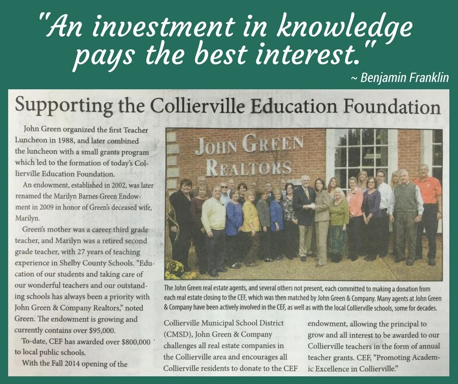 Two years later when her husband’s job was transferred again, she did not want to uproot the family. “Real estate was always something I had wanted to do, but kept saying, ‘When the kids get older.’ Now I had to do something so we could stay. So the next day, I cleared my calendar and started school.” She called John Green, with whom she had served on a board, and asked to work with him after she got her license. He agreed, and she has never interviewed with another company.